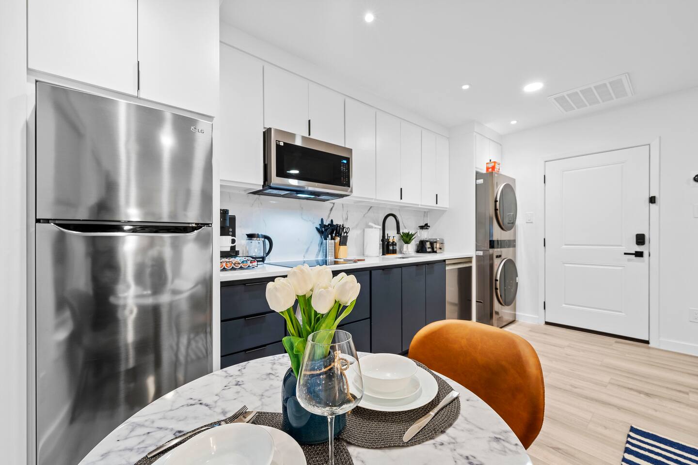 🏡 What Guests Love Most!! ★Spotless, home-like comfort (“immaculate,” “felt like home”) ★Outstanding hospitality ("fast responses", "proactive hosting") ★Unbeatable location near Bishop Arts + Downtown. ★Private parking & safe, quiet setting ★Beautiful design exactly like the photos ★Cozy, hotel-quality bed guests rave about Unbeatable Location ✔ 9 Min to Downtown Dallas ✔ 12 Min to Deep Ellum ✔ 16 Min to Lower Greenville ✔ 11 Min to Uptown ✔ 16 Min to Lovefield Airport ✔ 21 Min to AT&T Stadium Morning light spills across the quiet streets of the Bishop Arts District as you step out to grab coffee from a nearby café. When you return, soft light fills your open living area, where an electric fireplace adds warmth and glow. As the evening settles in, the space invites you to unwind with a film on the 55" Roku HDTV or enjoy a meal prepared in your own full kitchen after a day exploring Dallas. Living and relaxation The living area offers a calm, comfortable place to rest after taking in the neighborhood’s art, music, and charm. A plush sofa faces the fireplace and TV, creating a cozy atmosphere for movie nights or quiet reading. Thoughtful touches like board games and a theme room add personality to the home, while Wi-Fi and a dedicated workspace make it easy to stay connected or work remotely. Kitchen and dining The full kitchen includes an induction stove, refrigerator, dishwasher, LG convection microwave oven, and cooking basics. You’ll also find a Keurig coffee maker, electric kettle, and Instant Pot for quick meals or slow mornings. A small dining table for two sits nearby, ideal for breakfast or a quiet dinner at home. Sleeping arrangements The bedroom features a king bed with soft linens, room-darkening shades, and a smart TV for late-night shows. A queen air mattress is available upon request, allowing the apartment to comfortably host up to four guests. Clothing storage and extra pillows make it well-suited for longer stays. Bathroom and essentials The bathroom includes a walk-in glass shower and bathroom essentials such as towels, bed sheets, soap, and toilet paper. A hair dryer, washer, and dryer are also provided, ensuring everything you need for a convenient stay. Comfort and safety The home is equipped with air conditioning, central heating, a ceiling fan, and an electric indoor fireplace. Safety amenities include a smoke alarm, carbon monoxide alarm, and a first aid kit. Parking and access Guests can enjoy free residential garage parking on the premises or free street parking nearby. Optional secure gated parking is available for $9.99 per day, while Level 2 EV charging (220 volts, 12–35 miles per hour) is available for $25 per day and includes gated access. Luggage dropoff is permitted, and self check-in through a smart lock makes arrivals easy. Family-friendly details Families will find small touches like a pack ’n play/travel crib (available on request), board games, and table corner guards for peace of mind. Neighborhood Located in the Bishop Arts District, the apartment sits among colorful murals, galleries, and locally owned restaurants such as Paradiso, Oddfellows, and Eno’s Pizza Tavern. With attractions like the Deep Ellum, Dallas Zoo, Reunion Tower, and the Dallas Museum of Art just minutes away by car, you’ll have endless ways to explore the city before returning to a peaceful retreat in one of Dallas’s most creative neighborhoods. 🩺 For Medical Guests If you’re visiting Dallas for medical care or to support a loved one, this beautiful apartment offers a quiet, peaceful place to rest between appointments. It's centrally located near all major hospitals in the Dallas Medical District: UT Southwestern (8–10 min), Parkland Hospital (9–12 min), Children’s Medical Center (9–12 min), Clements University Hospital (9–12 min), Zale Lipshy (10–12 min), Scottish Rite (12–15 min), Methodist Dallas (7–9 min), and Baylor Medical Center (14–18 min). With gated parking, easy access to main roads, and walkable cafés and groceries nearby, this space is designed to make long stays comfortable, calm, and stress-free.