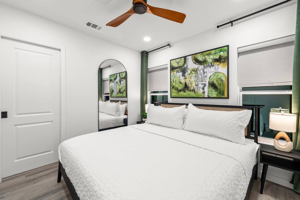 ★ ADDITIONAL ACCOMMODATION ★ Traveling in a larger group, or your preferred dates are already taken? You'll be happy to know that we offer additional accommodation in the city. Please browse our host profile for the complete list of our listings. ★ COVID-19 SANITIZATION ★ Health, safety, and well-being of our guests are of utmost importance. For this reason, we use a thorough cleaning process after each check-out. You can feel comfortable knowing that our cleaners follow the complete procedure to ensure that our units are entirely disinfected and sanitized, adhere to coronavirus prevention procedures, wipe all doors and keypads, and keep our environment clean. ★ NO PETS ALLOWED ★ We love those little (and not so little) furry bundles of joy. Sadly, our home is not suitable to accommodate them. ★ NO SMOKING INSIDE ★ Please refrain from smoking inside the home! Any smoking evidence will result in odor removal and furniture cleaning fees. ★ NO PARTIES/EVENTS ★ We kindly ask you to treat our home as your own to preserve its pristine condition for future guests and your return visits. Please respect the community noise ordinance from 9PM to 7 AM. Unauthorized gatherings will be terminated immediately with no refund. Always be respectful of our community and be good neighbors. ★ SECURE PARKING AND EV CHARGING ★ 1) *Optional secure gated parking for one private vehicle (max 9’ width incl. mirrors) available at $9/day ($40 Value). 2) *Optional EV Level 2 Charger available for one private vehicle (max 9’ width incl. mirrors) for a flat fee of $25/day ($45 Value). ★ ADDITIONAL DETAILS TO NOTE ★ ✔ The unit is located on the second floor, and guests will need to use the stairs to access it, as there is no elevator in the building. ✔ All guests must be listed on the reservation. Per our community guidelines, only two visitors are allowed. Overnight hours start at 11 PM. ✔ It is essential to review our house rules before booking. ✔ Please park trucks and vans on the street; the driveway is for cars and small SUVs only. ✔ Games and activities depicted in the listing may vary and are subject to change based on market availability and demand. ✔ It's Texas! Please keep all the doors shut so little critters won't make their way into the property, and keep the heat out. For same-day, last-minute reservations, please note that the unit may not have been prioritized for immediate preparation, and check-in may be delayed. We kindly ask that you coordinate with the host to confirm your check-in time. We will do our best to accommodate you as promptly as possible. • • Local Guests MUST let us know at the time of booking if additional visitors will arrive during the stay or reservation will be canceled. No exceptions and no refunds. • • Thank you very much. We look forward to hosting you!