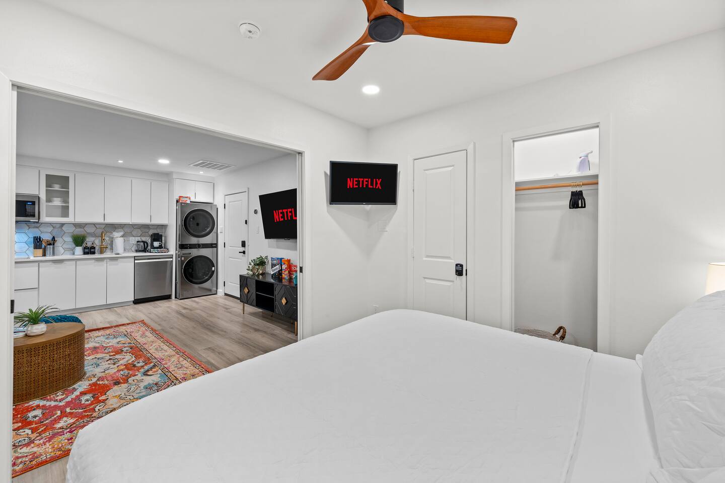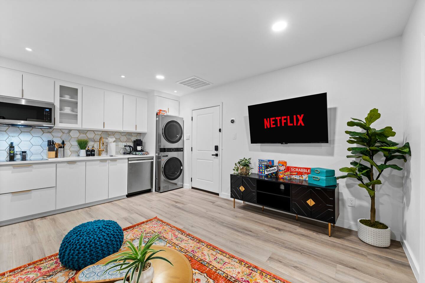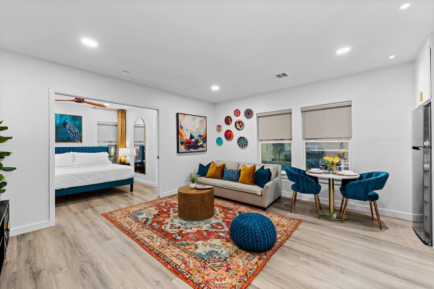 Welcome to a Moroccan-inspired retreat with warm textures in the heart of Bishop Arts District, minutes from Downtown Dallas. Perfect for weekend getaways, staycations, and longer stays. ★ Sleeps 4 | 1 Bedroom | 1 Bath ★ King bed + queen sofa bed ★ Fast WiFi, dedicated workspace ★ Free driveway/street parking ★ Self check-in (smart lock) ★ Gated community, putting green, backyard games ★ Fully equipped kitchen ★ 🧺In-unit washer/dryer ★ 55” Roku TV liv + 32” ★ Early check-in/late check-out opt