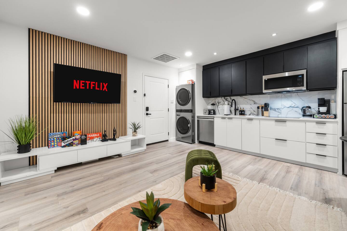 ★ ADDITIONAL ACCOMMODATION ★ Traveling in a larger group, or your preferred dates are already taken? You'll be happy to know that we offer additional accommodation in the city. Please browse our host profile for the complete list of our listings. 📍Please Note – Apartment Living 🏢 This unit is located in a residential apartment building. While the space is usually quiet and peaceful (as mentioned by most of our guests! 😊), there is always a small chance of hearing sounds from nearby units every so often — again, not often at all — just part of apartment living! 🛋✨ It's very rare, but we always want to set the right expectations and appreciate your understanding! 💛 ★ COVID-19 SANITIZATION ★ Health, safety, and well-being of our guests are of utmost importance. For this reason, we use a thorough cleaning process after each check-out. You can feel comfortable knowing that our cleaners follow the complete procedure to ensure that our units are entirely disinfected and sanitized, adhere to coronavirus prevention procedures, wipe all doors and keypads, and keep our environment clean. ★ NO PETS ALLOWED ★ We love those little (and not so little) furry bundles of joy. Sadly, our home is not suitable to accommodate them. ★ NO SMOKING INSIDE ★ Please refrain from smoking inside the home! Any smoking evidence will result in odor removal and furniture cleaning fees. ★ NO PARTIES/EVENTS ★ We kindly ask you to treat our home as your own to preserve its pristine condition for future guests and your return visits. Please respect the community noise ordinance from 9PM to 7 AM. Unauthorized gatherings will be terminated immediately with no refund. Always be respectful of our community and be good neighbors. ★ SECURE PARKING AND EV CHARGING ★ 1) *Optional secure gated parking for one private vehicle (max 9’ width incl. mirrors) available at $9/day ($40 Value). 2) *Optional EV Level 2 Charger available for one private vehicle (max 9’ width incl. mirrors) for a flat fee of $25/day ($45 Value). (Please note this is a Tesla Level 2 EV charger. Guests are responsible for bringing their own compatible adapters. All EV charging fees are the guest’s responsibility and are non-refundable.) ★ ADDITIONAL DETAILS TO NOTE ★ ✔ The unit is located on the second floor, and guests will need to use the stairs to access it, as there is no elevator in the building. ✔ All guests must be listed on the reservation. Per our community guidelines, only two visitors are allowed. Overnight hours start at 11 PM. ✔ It is essential to review our house rules before booking. ✔ Please park trucks and vans on the street; the driveway is for cars and small SUVs only. ✔ Games and activities depicted in the listing may vary and are subject to change based on market availability and demand. ✔ It's Texas! Please keep all the doors shut so little critters won't make their way into the property, and keep the heat out. For same-day, last-minute reservations, please note that the unit may not have been prioritized for immediate preparation, and check-in may be delayed. We kindly ask that you coordinate with the host to confirm your check-in time. We will do our best to accommodate you as promptly as possible. • • Local Guests MUST let us know at the time of booking if additional visitors will arrive during the stay or reservation will be canceled. No exceptions and no refunds. • • Thank you very much. We look forward to hosting you!