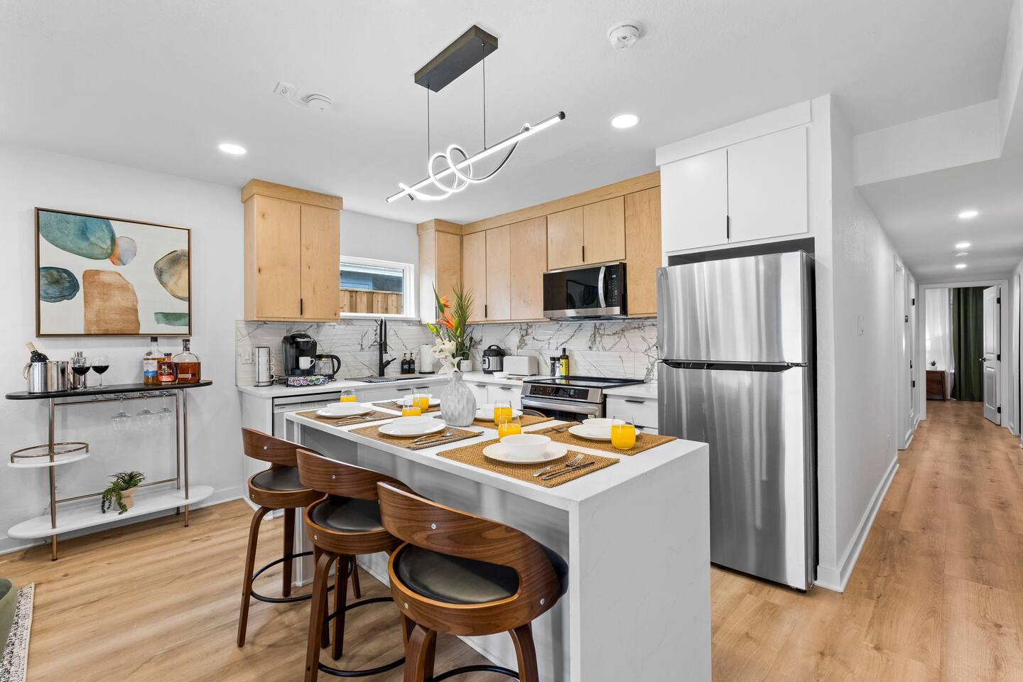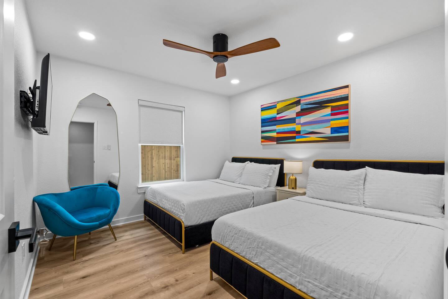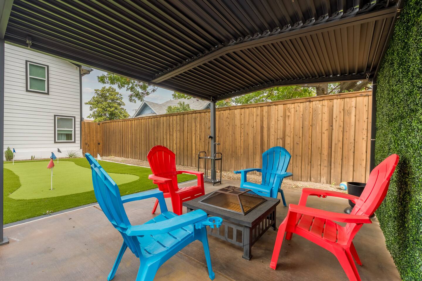 Morning light filters through the windows as you step onto the patio, coffee in hand, feeling the hum of the Bishop Arts District around you. In the evening, gather with friends in the backyard under string lights, sharing stories while the air carries the scent of nearby cafés. Whether you’re here for connection, creativity, or a comfortable retreat, this spacious property invites you to settle in and make yourself at home. Unbeatable Location ✔ 9 Min to Downtown Dallas ✔ 12 Min to Deep Ellum ✔ 16 Min to Lower Greenville ✔ 11 Min to Uptown ✔ 16 Min to Lovefield Airport ✔ 21 Min to AT&T Stadium Living space Designed for group stays, this property offers four fully furnished 2BR|2BA units, each with its own living area and kitchen. Together, they accommodate up to sixteen guests, offering both privacy and shared spaces to gather. Living rooms feature Smart TVs for relaxed evenings, while board games and a mini golf area bring a playful touch to your downtime. Every bedroom is prepared with soft linens, extra pillows, and room-darkening shades for restful nights. Kitchen & dining Each unit includes a full kitchen equipped for everyday cooking and shared meals. You’ll find essentials like a refrigerator, stove, oven, dishwasher, and cooking basics, along with a Nespresso coffee maker and wine glasses for easy entertaining. Gather around the dining table for home-cooked dinners, or take your morning coffee outside to the patio for a quiet start to the day. Outdoor living Step into the backyard - an open green space ideal for morning stretches or evening conversation. Some units include patios or balconies where you can relax beneath the Texas sky. The property offers free on-site and street parking, plus an EV charger for electric vehicles. Comfort & convenience Air conditioning, heating, ceiling fans, and indoor fireplaces ensure comfort year-round. Wi-Fi and a dedicated workspace make remote work simple, while washers and dryers in the units support longer stays. With self check-in via smart lock, your arrival is flexible and seamless. Entertainment & family features Spend time together with Smart TVs, mini golf, and board games. Families will appreciate the inclusion of a Pack ’n Play/travel crib, and theme rooms that add a touch of personality to the stay. Safety & peace of mind The property is equipped with smoke and carbon monoxide alarms, exterior security cameras, noise decibel monitors, a first aid kit, and a fire extinguisher. Neighborhood Set in Dallas’s lively Bishop Arts District, you’re surrounded by boutique shops, galleries, and some of the city’s best dining. Walk tree-lined streets by day, then unwind at local restaurants or live music venues just minutes away. Major attractions like the Dallas Zoo and Fair Park are within easy reach, making it a convenient home base for exploring the city. 🩺 For Medical Guests If you’re visiting Dallas for medical care or to support a loved one, this beautiful setup offers a quiet, peaceful place to rest between appointments. It's centrally located near all major hospitals in the Dallas Medical District: UT Southwestern (8–10 min), Parkland Hospital (9–12 min), Children’s Medical Center (9–12 min), Clements University Hospital (9–12 min), Zale Lipshy (10–12 min), Scottish Rite (12–15 min), Methodist Dallas (7–9 min), and Baylor Medical Center (14–18 min). With gated parking, easy access to main roads, and walkable cafés and groceries nearby, this space is designed to make long stays comfortable, calm, and stress-free.. Perfect for Families, groups of friends, or coworkers traveling together who value shared experiences and personal comfort. With multiple self-contained units, inviting outdoor areas, and a central location in Bishop Arts, this space brings together the best of group living and individual privacy in one welcoming setting.