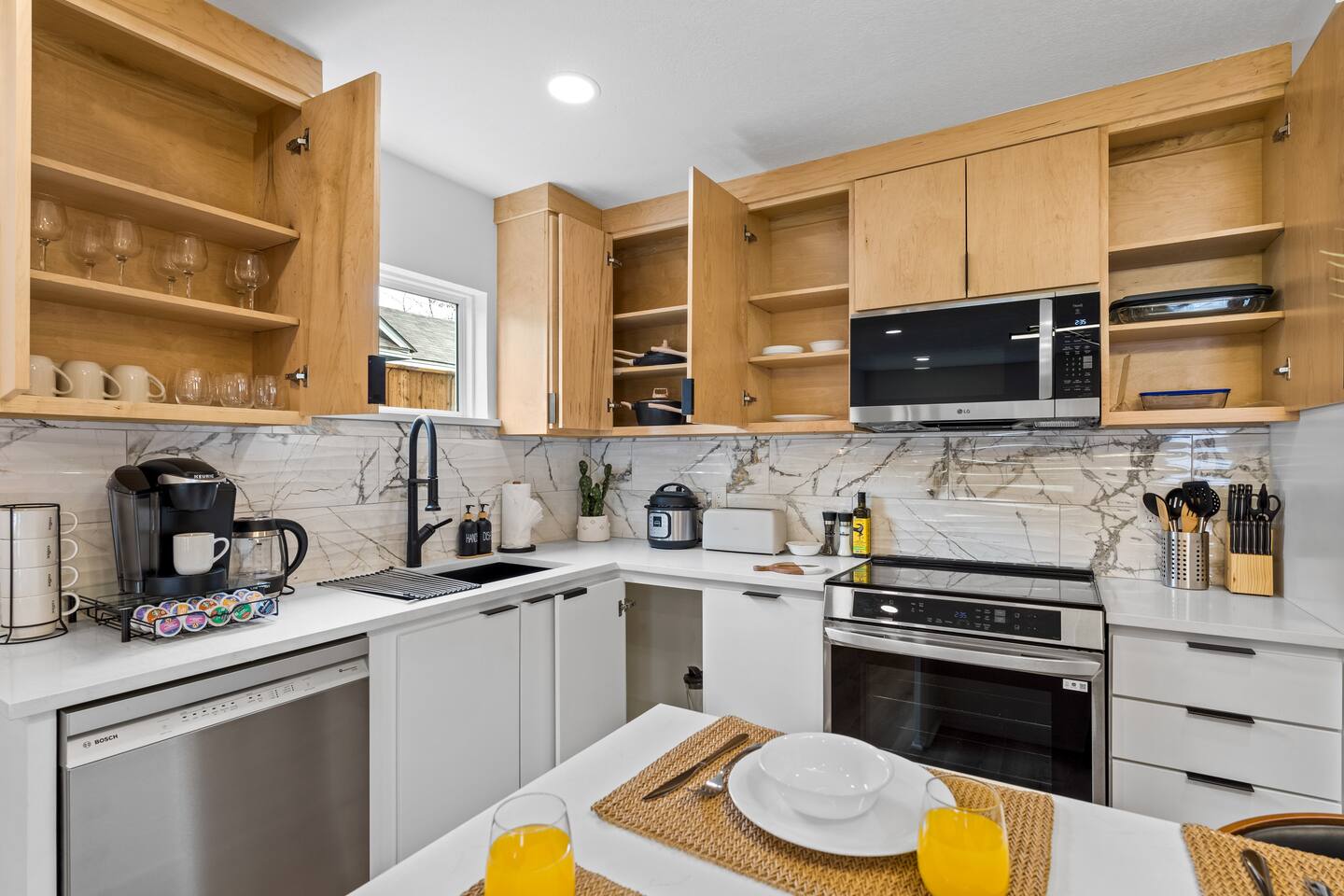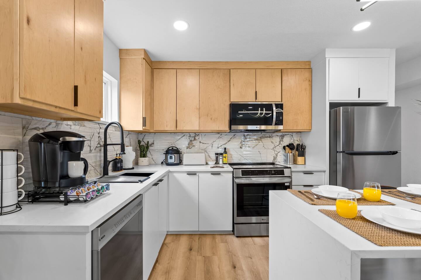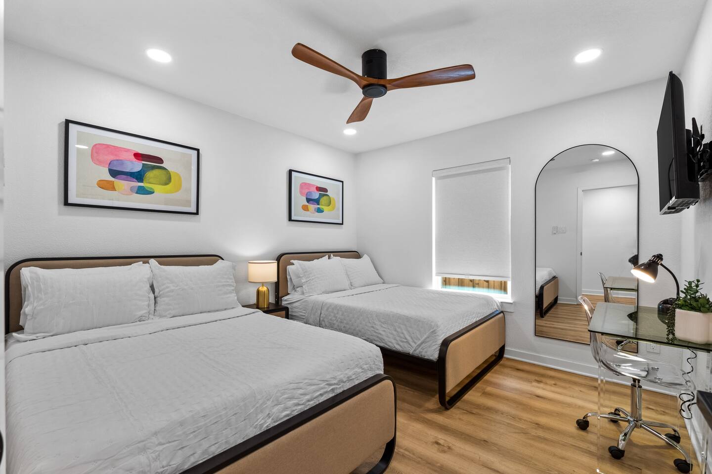 Morning light filters through the windows as you step onto the patio, coffee in hand, feeling the hum of the Bishop Arts District around you. In the evening, gather with friends in the backyard under string lights, sharing stories while the air carries the scent of nearby cafés. Whether you’re here for connection, creativity, or a comfortable retreat, this spacious property invites you to settle in and make yourself at home. Unbeatable Location ✔ 9 Min to Downtown Dallas ✔ 12 Min to Deep Ellum ✔ 16 Min to Lower Greenville ✔ 11 Min to Uptown ✔ 16 Min to Lovefield Airport ✔ 21 Min to AT&T Stadium Living space Designed for group stays, this property offers four fully furnished 2BR|2BA units, each with its own living area and kitchen. Together, they accommodate up to sixteen guests, offering both privacy and shared spaces to gather. Living rooms feature Smart TVs for relaxed evenings, while board games and a mini golf area bring a playful touch to your downtime. Every bedroom is prepared with soft linens, extra pillows, and room-darkening shades for restful nights. Kitchen & dining Each unit includes a full kitchen equipped for everyday cooking and shared meals. You’ll find essentials like a refrigerator, stove, oven, dishwasher, and cooking basics, along with a Nespresso coffee maker and wine glasses for easy entertaining. Gather around the dining table for home-cooked dinners, or take your morning coffee outside to the patio for a quiet start to the day. Outdoor living Step into the backyard - an open green space ideal for morning stretches or evening conversation. Some units include patios or balconies where you can relax beneath the Texas sky. The property offers free on-site and street parking, plus an EV charger for electric vehicles. Comfort & convenience Air conditioning, heating, ceiling fans, and indoor fireplaces ensure comfort year-round. Wi-Fi and a dedicated workspace make remote work simple, while washers and dryers in the units support longer stays. With self check-in via smart lock, your arrival is flexible and seamless. Entertainment & family features Spend time together with Smart TVs, mini golf, and board games. Families will appreciate the inclusion of a Pack ’n Play/travel crib, and theme rooms that add a touch of personality to the stay. Safety & peace of mind The property is equipped with smoke and carbon monoxide alarms, exterior security cameras, noise decibel monitors, a first aid kit, and a fire extinguisher. Neighborhood Set in Dallas’s lively Bishop Arts District, you’re surrounded by boutique shops, galleries, and some of the city’s best dining. Walk tree-lined streets by day, then unwind at local restaurants or live music venues just minutes away. Major attractions like the Dallas Zoo and Fair Park are within easy reach, making it a convenient home base for exploring the city. 🩺 For Medical Guests If you’re visiting Dallas for medical care or to support a loved one, this beautiful setup offers a quiet, peaceful place to rest between appointments. It's centrally located near all major hospitals in the Dallas Medical District: UT Southwestern (8–10 min), Parkland Hospital (9–12 min), Children’s Medical Center (9–12 min), Clements University Hospital (9–12 min), Zale Lipshy (10–12 min), Scottish Rite (12–15 min), Methodist Dallas (7–9 min), and Baylor Medical Center (14–18 min). With gated parking, easy access to main roads, and walkable cafés and groceries nearby, this space is designed to make long stays comfortable, calm, and stress-free.. Perfect for Families, groups of friends, or coworkers traveling together who value shared experiences and personal comfort. With multiple self-contained units, inviting outdoor areas, and a central location in Bishop Arts, this space brings together the best of group living and individual privacy in one welcoming setting.